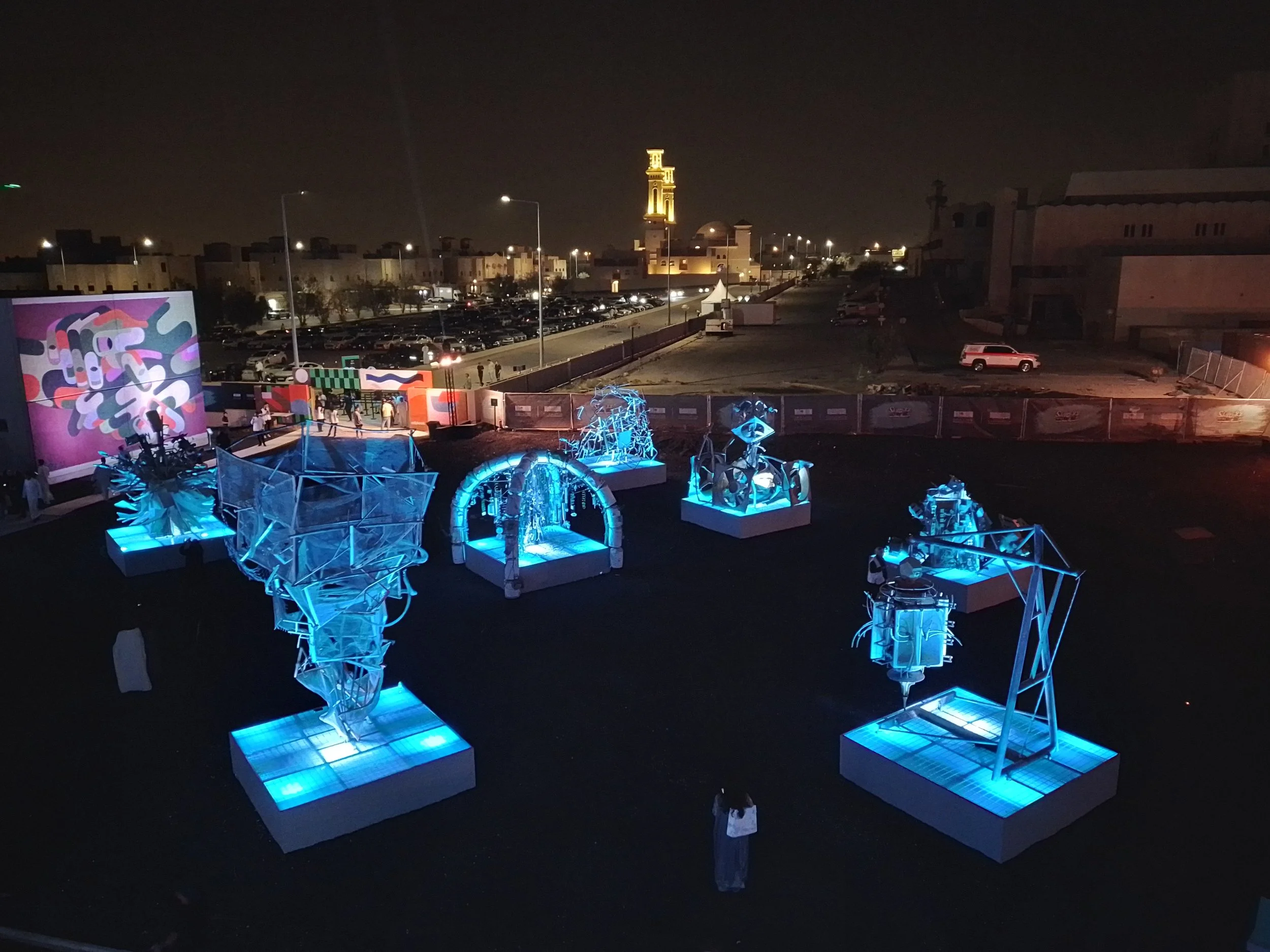 These are two large scale sculptures by artist Mike Ross. In 2007, the volunteer skeleton crew narrowly and victoriously completed Big Rig Jig on schedule for the Burning Man festival. The sculpture is made from 2 reconfigured semi trucks and tanker trailers. In 2017 some of the crew and family assembled to celebrate the permanent installation in Las Vegas, NV. Long live Judge Cal!